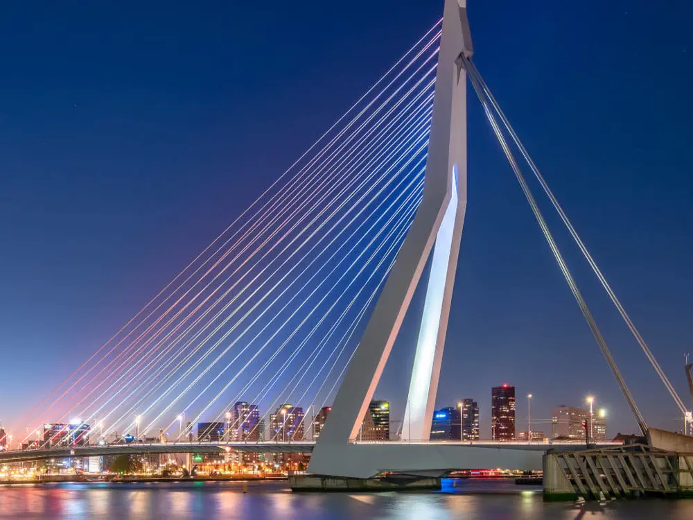 Erasmusbroen er 802 meter lang, og krysser elven Nieuwe Maas.