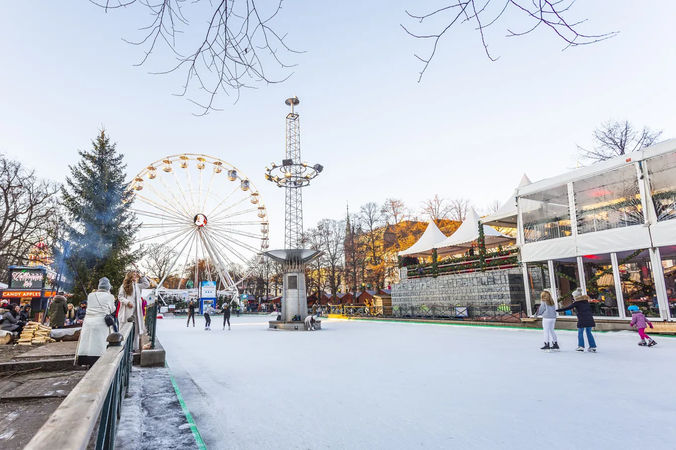Gå tilbake til Spikersuppa og lei skøyter i bua ved siden av skøytebanen. Skøyter til julemusikk midt i byen er en opplevelse hele familien husker.