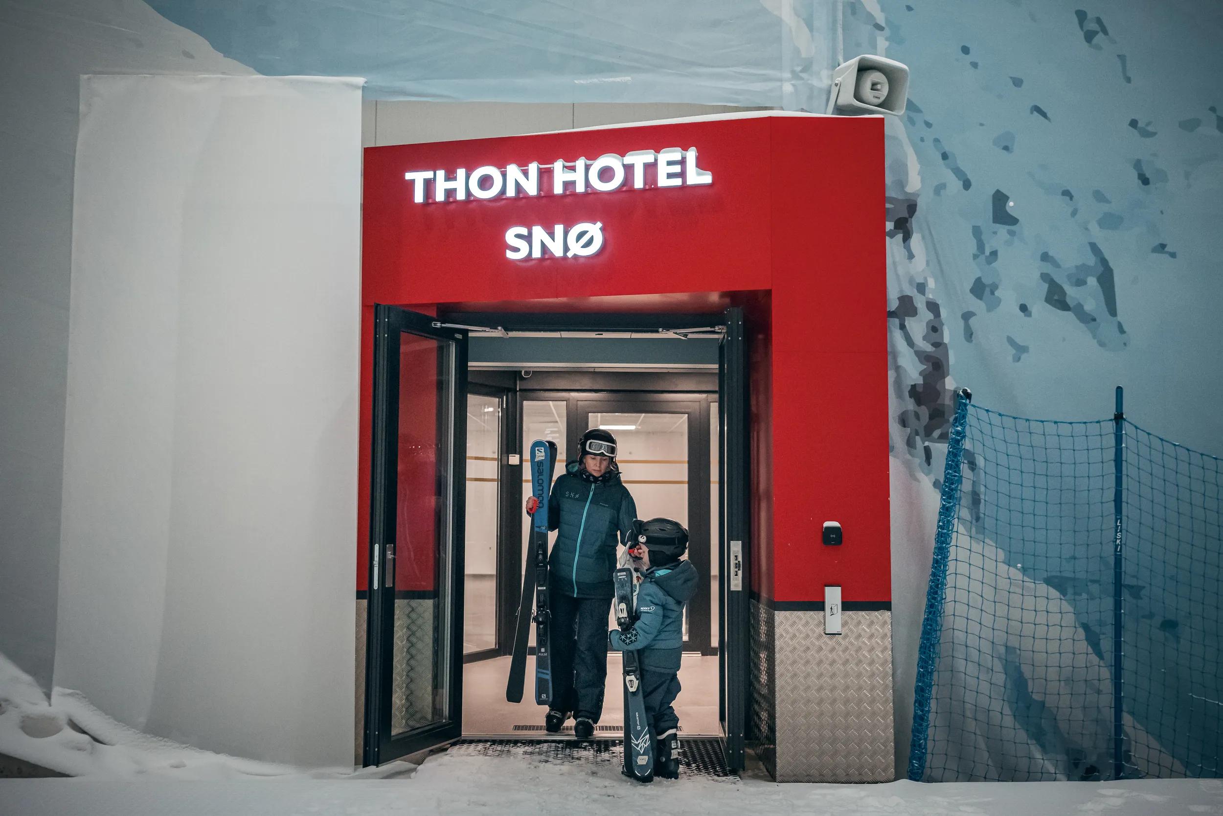 Sammen med samboeren Michell Langerhorst (36) og barna Wilmer (6) og Vega (3), fikk hun teste en helg på Thon Hotel Snø – hotellet i Lørenskog som har den unike beliggenheten vegg i vegg med Europas største innendørs skiarena.