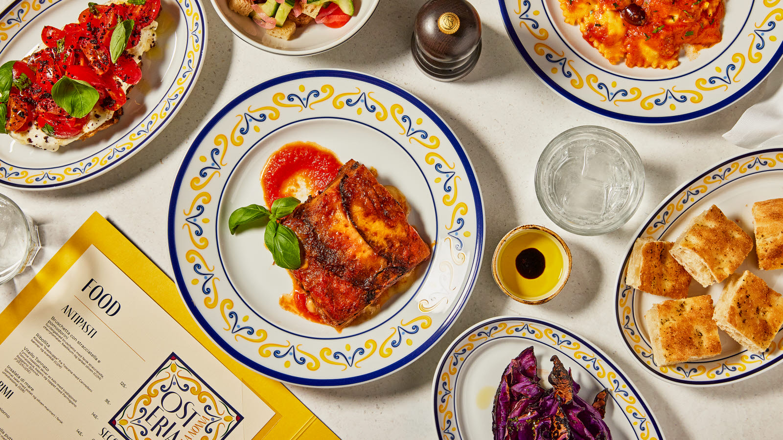 Her serveres retter som spaghetti med hjerteskjell, grillet tunfisk og gratinerte aubergineruller.