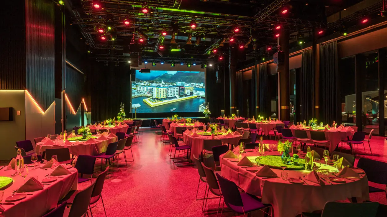 Thon Hotel Svolvær har en storsal som kan romme opptil 800 deltakere, perfekt for større konferanser og arrangementer. Salen er en stor og luftig sal som kan tilpasses ulike arrangementer, og kan også deles opp i to deler.