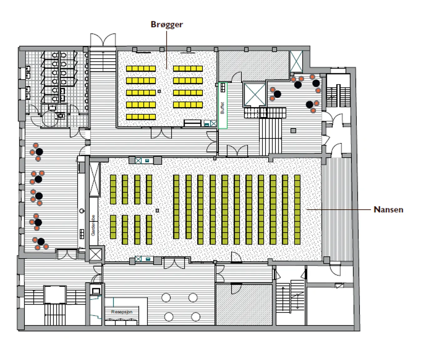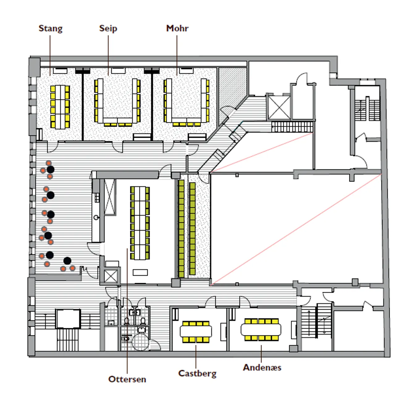 Kombinasjon av møterommene Seip og Stang.