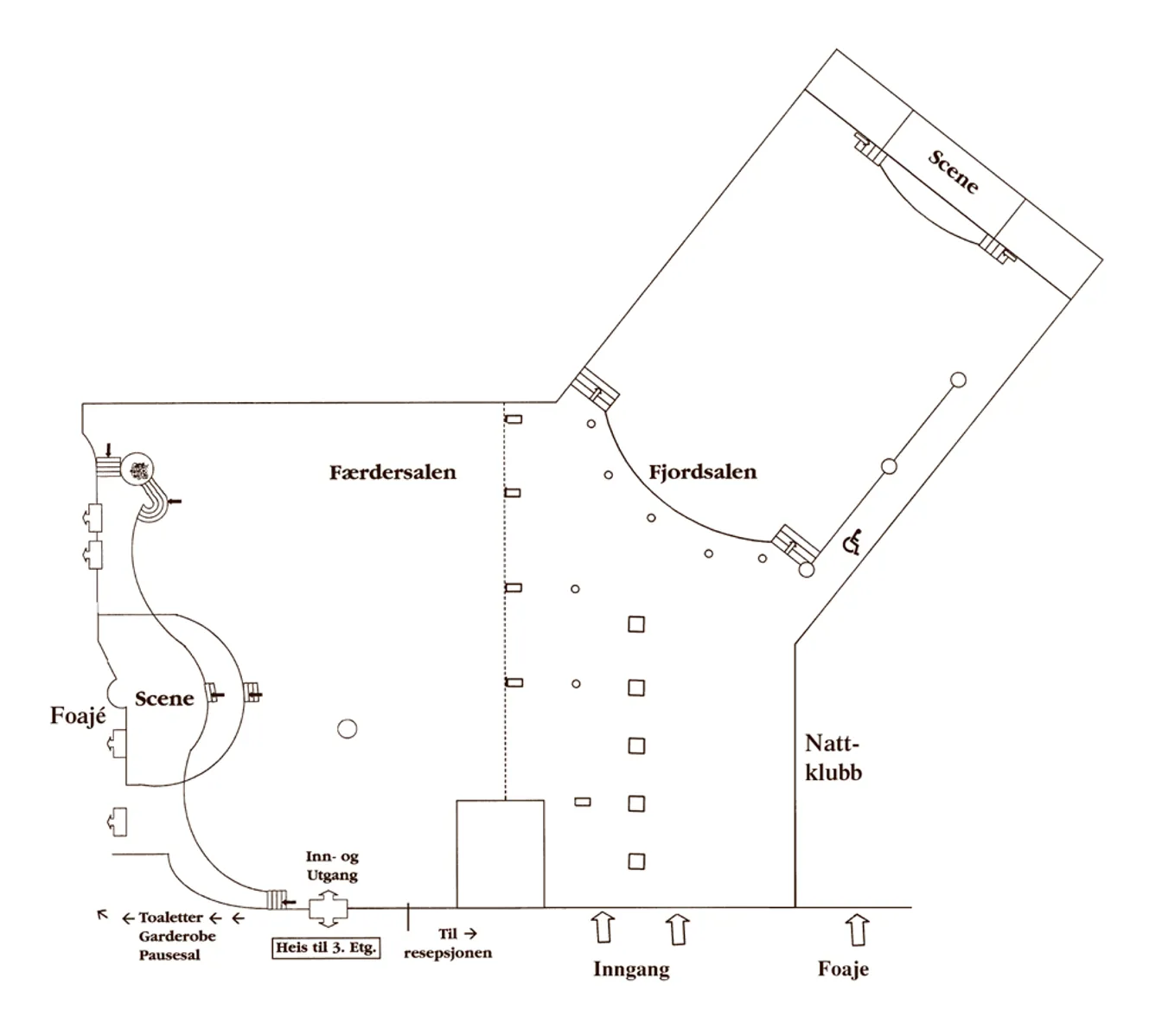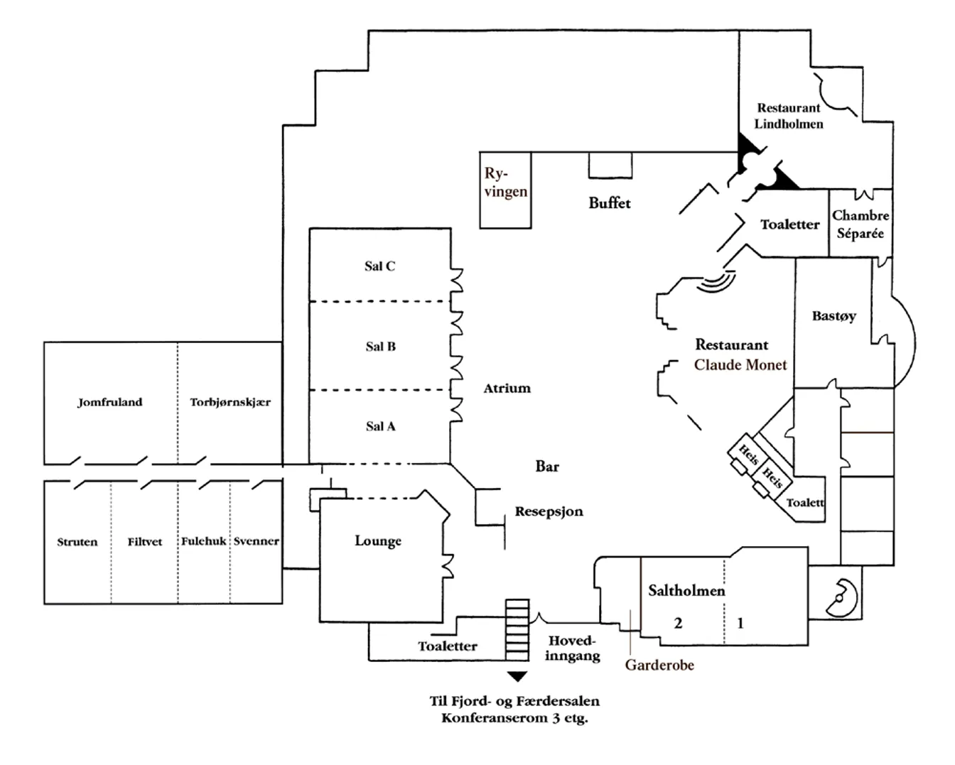 Moderne lokale med det siste innen lyd og bilde. Ligger i umiddelbar nærhet av hotellets lounge.