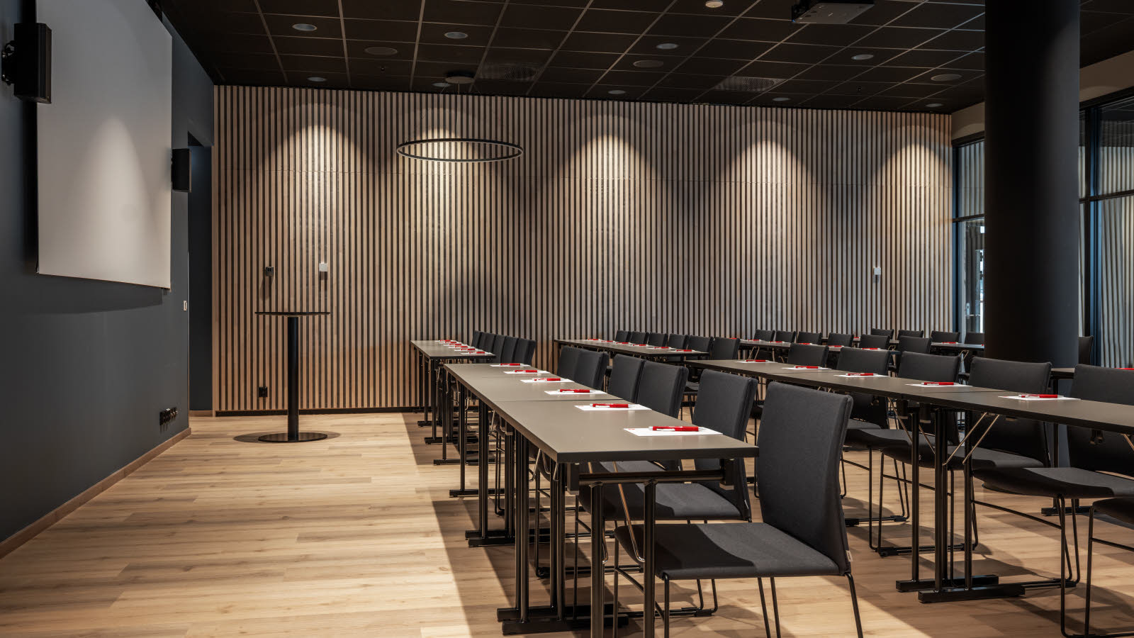 Her får du moderne konferansefasiliteter til alle anledninger, enten du skal arrangere en konferanse, et møte, eller et selskap. Det er parkeringsmuligheter i kjøpesenteret som ligger rett ved, og kort vei fra nærmeste bussterminal.
