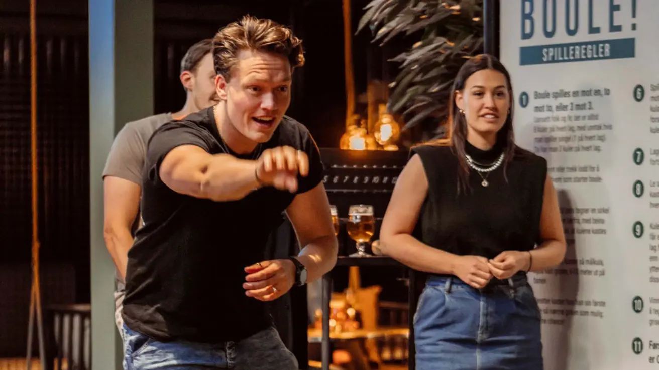Opplevelsen starter med en valgfri hovedrett fra det franske kjøkkenet. Her kan dere velge mellom samtlige hovedretter, i tillegg til dessert og kaffe. Etter middagen er det klart for 60 minutter med Boule, og for å avslutte kvelden får dere to tokens til arkadespill.
