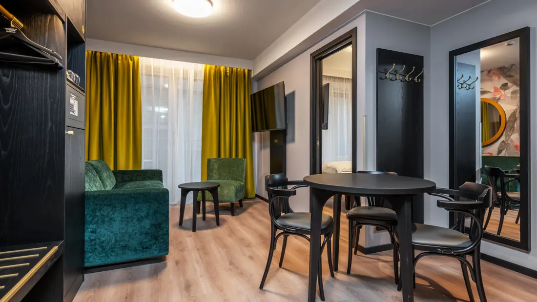 Alle med balkong, sofa og spisebord. - Thon Hotel Linne i Oslo har hybler fra 17 - 28m² tilgjengelig for langtidsleie. Alle har eget bad og minikjøkken.